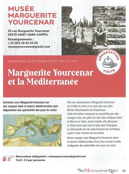 Dans le cadre du Festival Artistique et Culinaire "Nos Musées ont du goût", l'équipe du Musée Marguerite Yourcenar vous propose pour dimanche 12 octobre 2025 un spectacle inédit : Présentation de textes et dégustation de spécialités gastronomiques méditerranéennes.